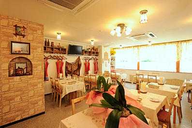 いかにも温かい雰囲気が出ている、ロシア風の店内でロシア料理を頂ける。壁にはロシアの民族衣装や民芸品・マトリョーシカを飾っている。