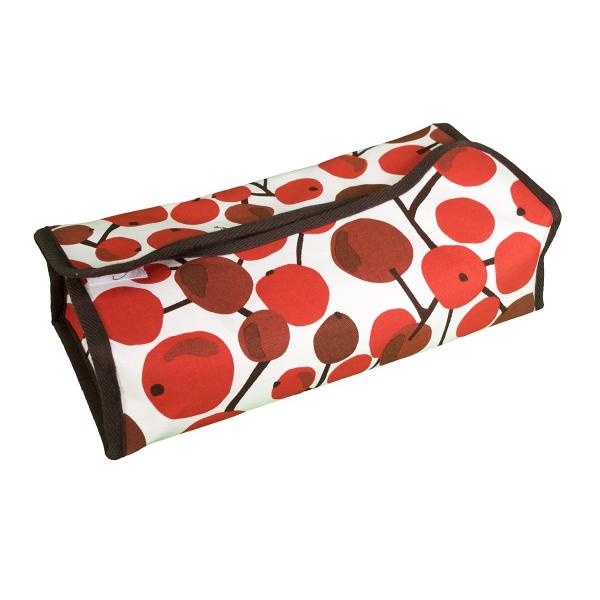 赤い果実が描かれたシンプルなデザインのティッシュカバーです。モダンなデザインで汎用性が高い代物です。